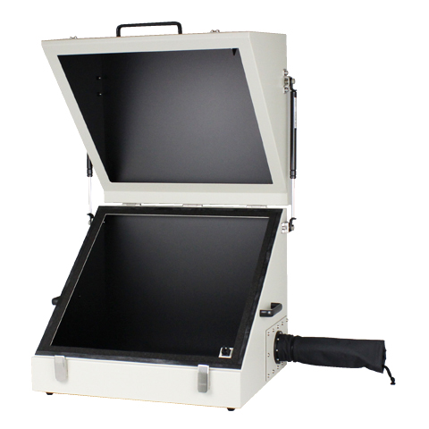 暗箱の出荷検査は、照度500lux以上の環境下で完全遮光であることを確認し、出荷しています。