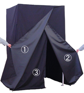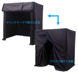 入口の暗幕を天井部分(半分)までめくることが可能です。